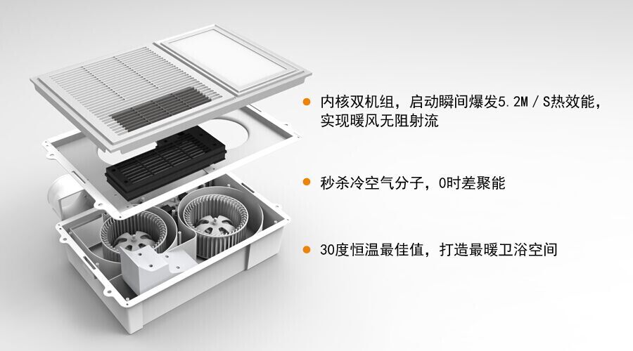 换气口风速达9m/s以上,与一般品牌电器相比,换气效果提升30%。秒杀异味的同时,高效弥补传统多合一取暖电器换气功能弱化的缺陷。