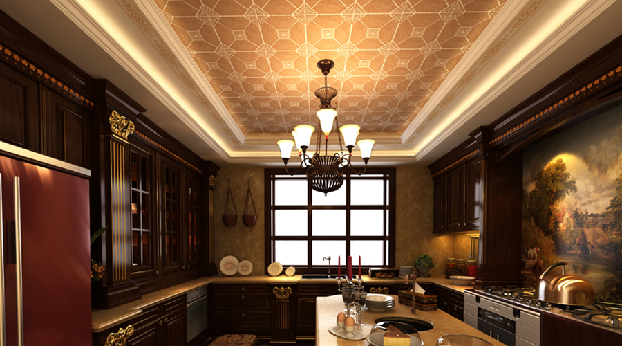 神秘的莫奈花园复制于顶,浓郁的异域感,就在来斯奥欧式厨房。当绝世佳作偶遇跨国恋,使集5000年文化于一体的中国家庭,更富灵气与异彩。吊顶配上华美的吊灯,尊贵之气随处流转。