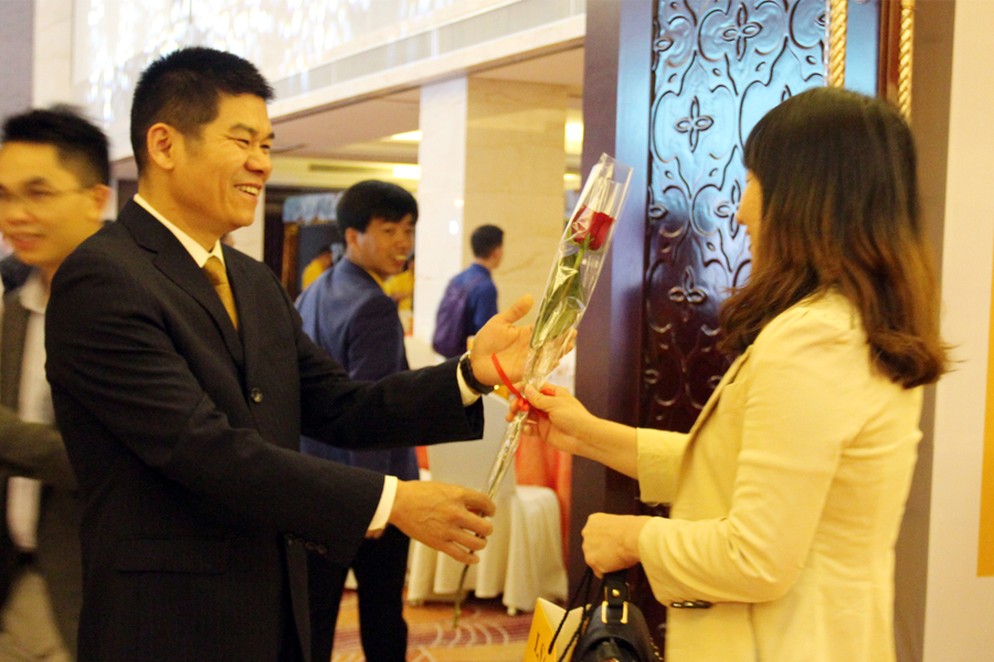 早上8点,经销商陆续来到会场,来斯奥的员工们早已站立在旁,迎接远道而来的家人们。他们精神抖擞,气宇轩昂,让人眼前一亮,体现了来斯奥人坚挺的面貌。同时,作为来斯奥“暖男”,他们手持玫瑰,为每位来斯奥的女宾递上鲜花,暖男气质爆棚。经销商朋友们也是满面春风,身着来斯奥“暖男”T恤,大步上前,自信满满,签名留影,此刻他们回到了总部,回到了家。