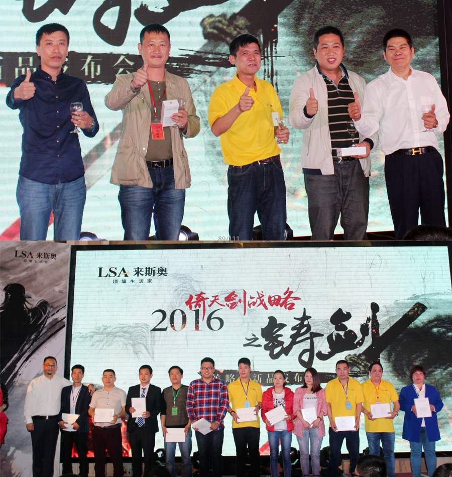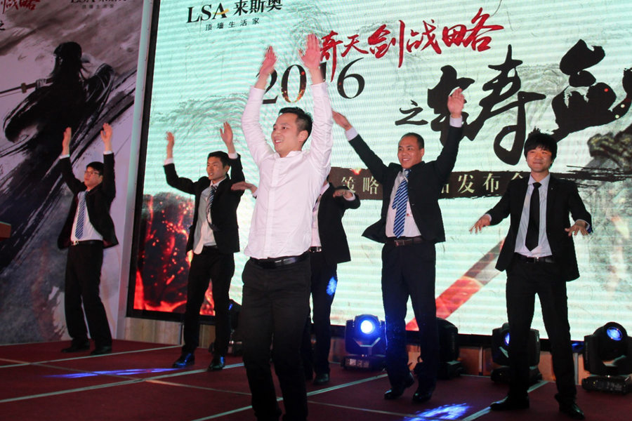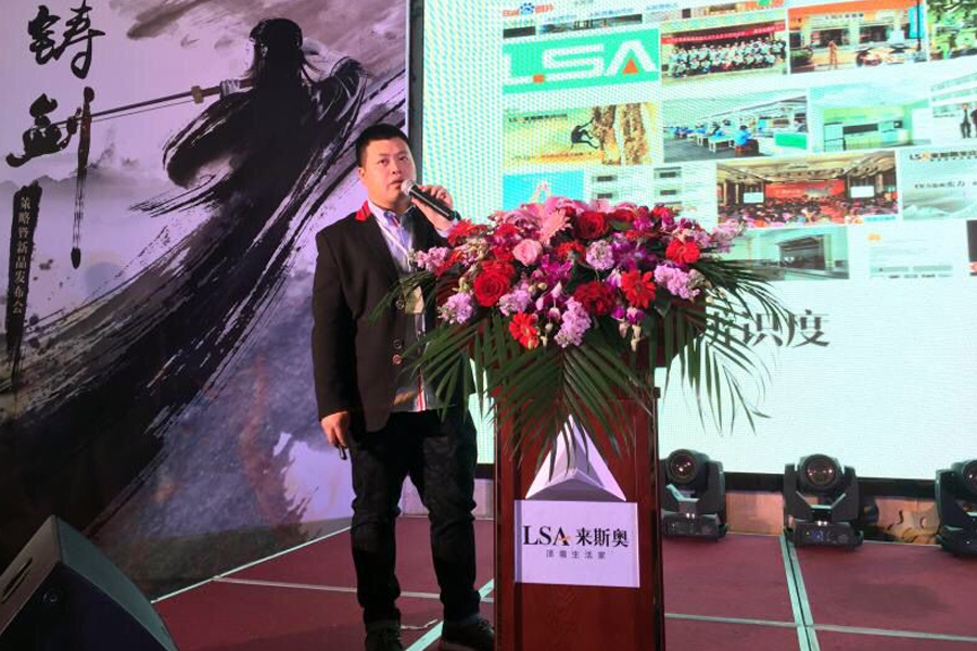 随后,来斯奥王总上台就2016铸剑策略作详细说明。他指出,来斯奥本次大会的倚天剑战略有四个核心。其一、战略剑魂就在“顶墙生活家”;其二、战略剑道就在“智慧家、洁丽珑、心设计”;其三、战略剑谱在于“全屋顶、竹木绿、家居电气”;其四、战略剑术在于“品牌、产品、终端、服务四大策略”,通过倚天剑战略的实现让来斯奥暖男走进千家万户。
